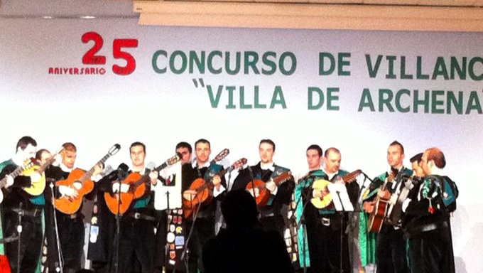 A continuación, nos dirigimos a Archena para participar por tercera vez en el 25 aniversario del Concurso de Villancicos «Villa de Archena» organizado por el Grupo de Coros y Danzas Verderol, en el que actuamos junto a coros y peñas de Murcia y de Almería. En esta edición tuvimos la fortuna de obtener el Tercer Premio con la interpretación de los villancicos Corre arrierito y Ha nacido un lucero, este último adaptado de un tema de Alberto Cortez.