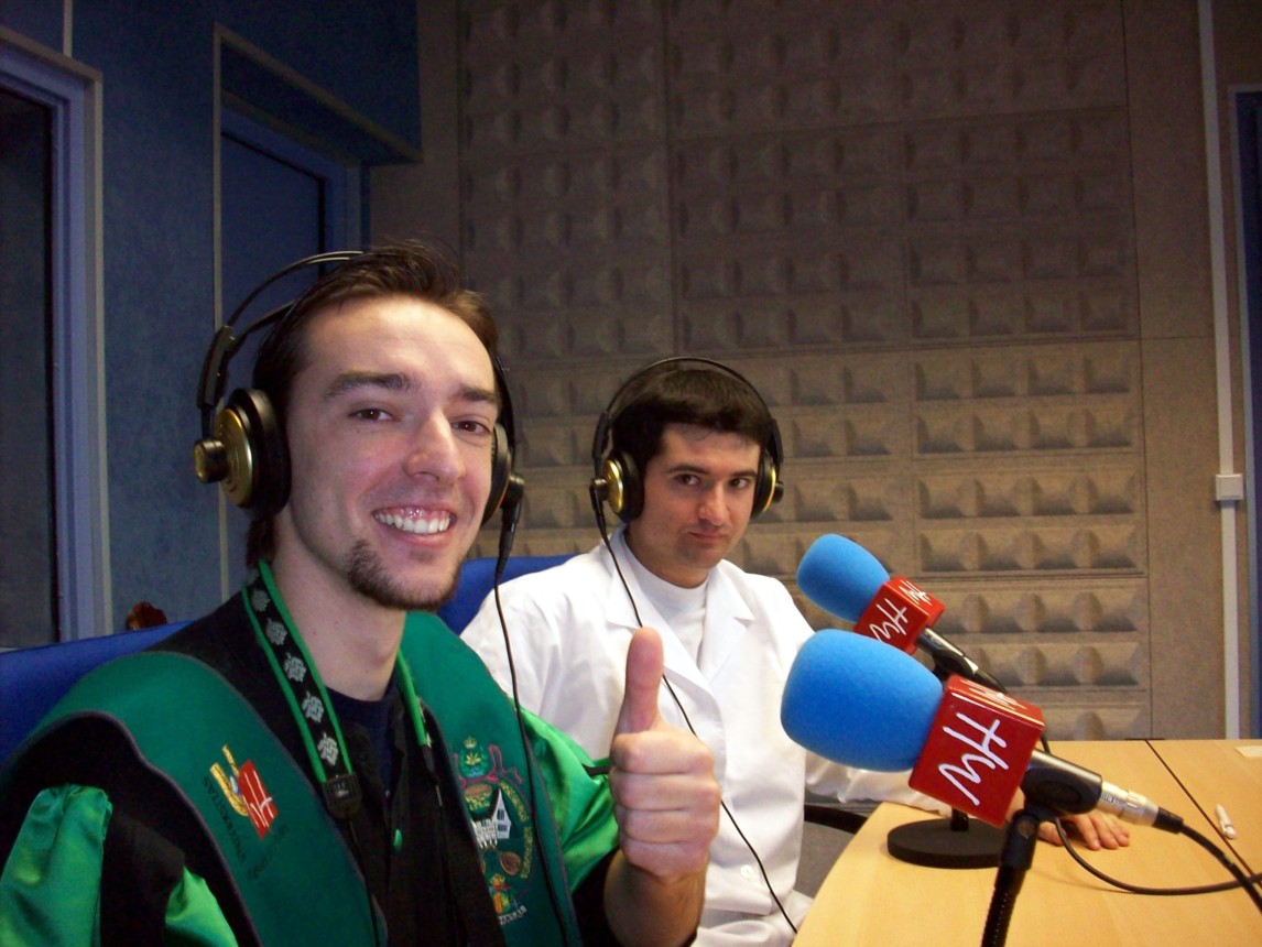 Nuestro Jefe de Tuna “Anchoa”, el Presidente “Amianto” y el Jefe de Novatos “Hachazo” intercambiaron risas, vivencias y canciones con las presentadoras del programa de música. Dentro de la entrevista los componentes de la tuna dieron respuesta a cuestiones relacionadas con el funcionamiento y las actividades que se promueven desde la Tuna, haciendo un especial apartado a la incorporación de nuevos estudiantes a nuestra asociación.