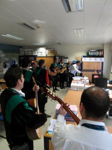 Al terminar el acto, la Tuna de Ingenieros Agrónomos de Orihuela (Tuna de la UMH) deleito a los presentes en el hall del edificio con diversas canciones típicas.
